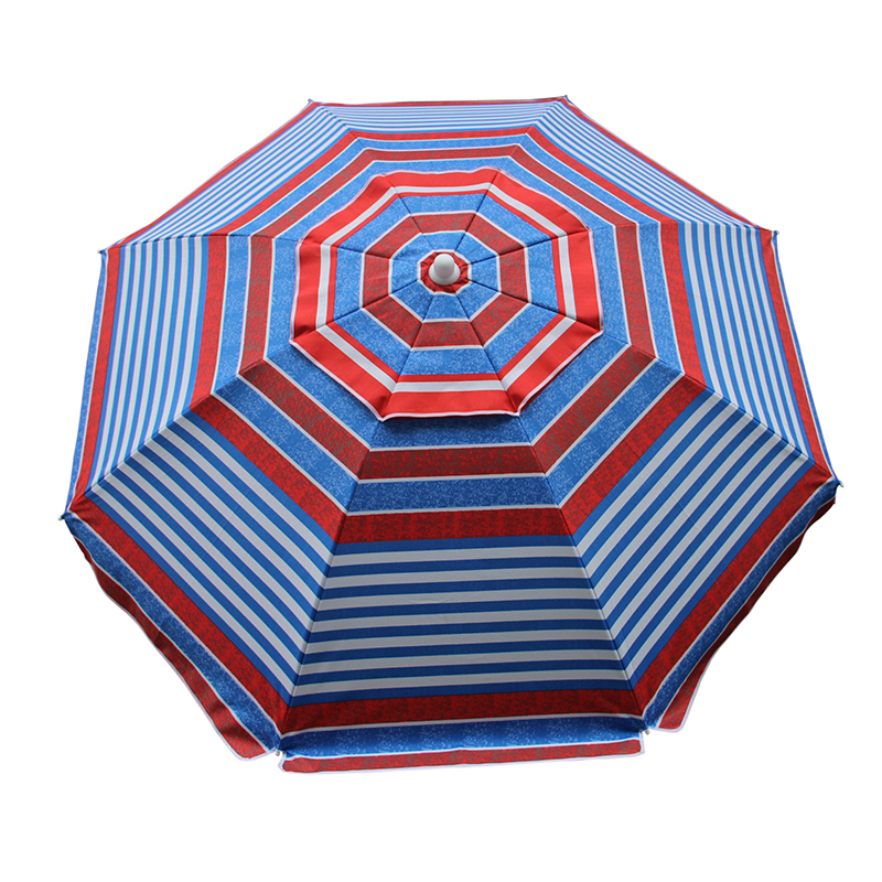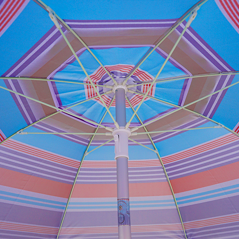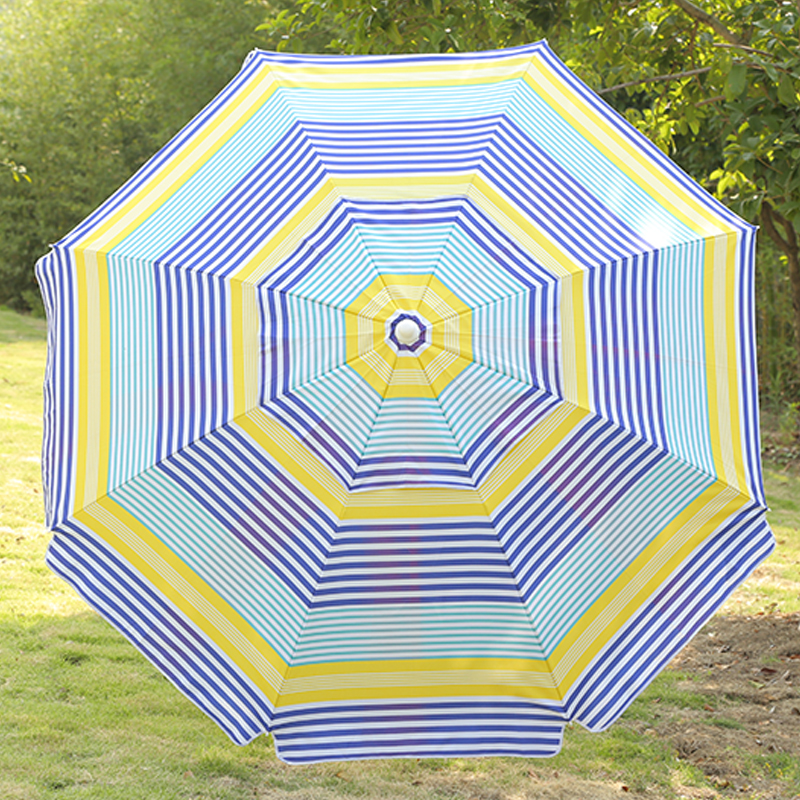Rannan sateenvarjo omaksuu raidallisen mallin, jossa on kirkkaat värit ja kauniit kuviot, jotka voivat lisätä elinvoimaa ja hauskaa ulkoiluun. Raidallinen muotoilu ei ole vain kaunis ja antelias, vaan myös tehokkaasti aurinko ja tarjoaa auringonvarjo -vaikutuksen.