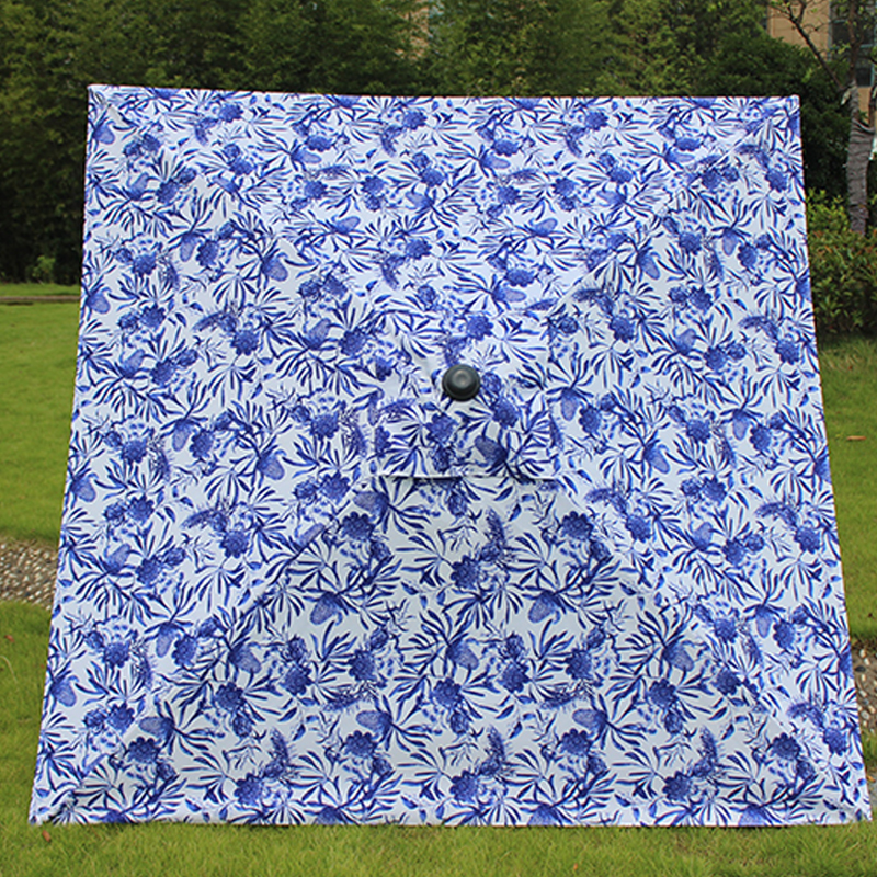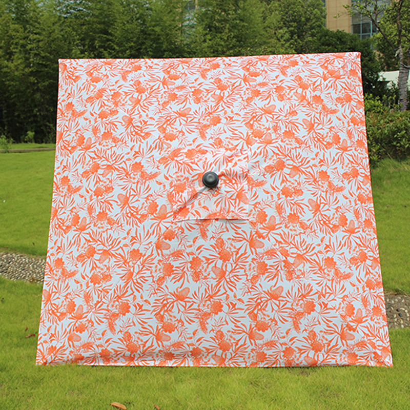 Teräs Square Garden -säteen, kukka GP1917, omaksuu klassisen neliön muotoilun. Kun sateenvarjo on taitettu, se muodostaa tilavan sävyalueen, jonka koko on 2,0x2,0 metriä tai 2,5x2,5 metriä, mikä voi tarjota runsaasti varjotilaa useille ihmisille. Sateenvarjopinta on valmistettu 160 g: n tai 180 g: n polyesterkankaasta, jolla on hyvä valonsuojaus ja kestävyys, voi tehokkaasti estää ultraviolettisäteet ja suojata sinua suoralta auringonvalolta. Sateenvarjopinnan kuviosuunnittelu on hieno, lisäämällä eleganssia ja muoti ulkotilaan.