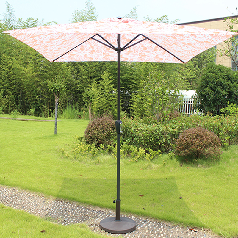 Tämän puutarhan sateenvarjon napa ja kylkiluut ovat valmistettu korkealaatuisesta teräksestä, mikä varmistaa sateenvarjon tukevuuden ja vakauden. Sateenvarjonnan halkaisija on 34 mm tai 38 mm, joka kestää suuria tuulivoimia ja varmistaa sateenvarjon turvallisuus käytettäessä ulkona. Sateenvarjon kylkiluut on valmistettu 12 mm: n*18 mm: n teräs kylkiluista, yhteensä 4 tai 8 kylkiluusta, jotka voivat tasaisesti tukea sateenvarjojen pintaa, mikä tekee sateenvarjon pinnan tasaisemmaksi ja vakaammaksi.